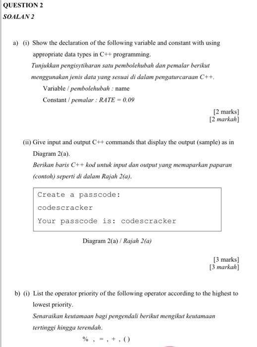 Solved Question 2 Soalan 2 A Show The Declaration Of The Chegg Com
